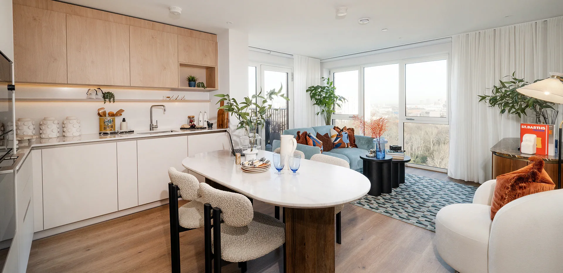 The apartments at Bow Green have been designed to offer comfort, practicality, and a strong visual connection to the development’s landscaped surroundings. Interiors reflect a clean, contemporary style with high-quality finishes throughout.